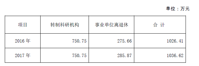 從上表中可以看出轉(zhuǎn)制科研機構(gòu)經(jīng)費保持不變,事業(yè)單位離退休增加了10.21萬元。